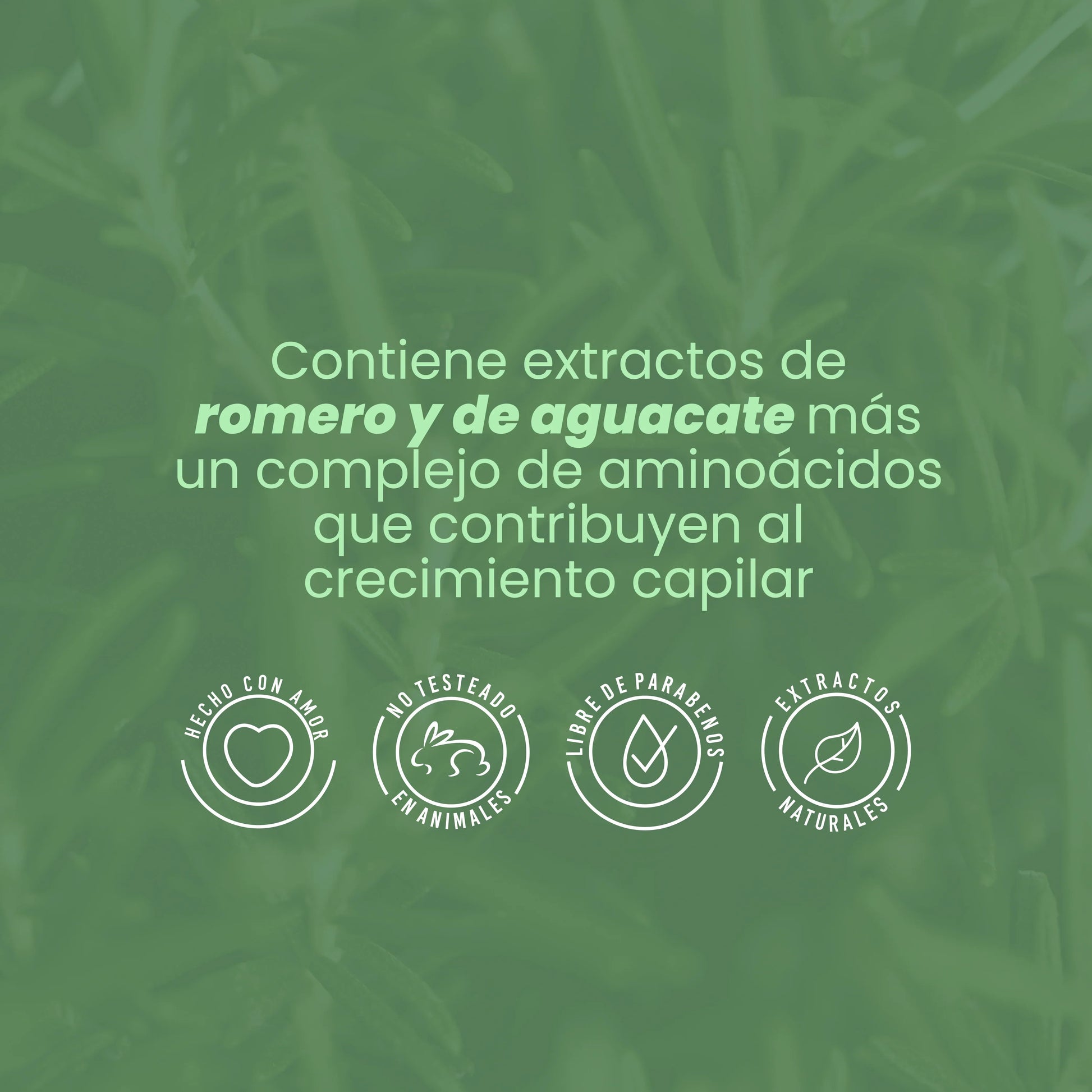 Contiene extractos de romero y de aguacate más un complejo de aminoácidos que aportan crecimiento, hidratación y fortalecimiento de la fibra capilar. Ideal para reparación de daño en la superficie. Contiene un extraordinario sistema de nutrición que combate la resequedad capilar, aporta brillo, luminosidad, sedosidad y vitalidad al cabello.